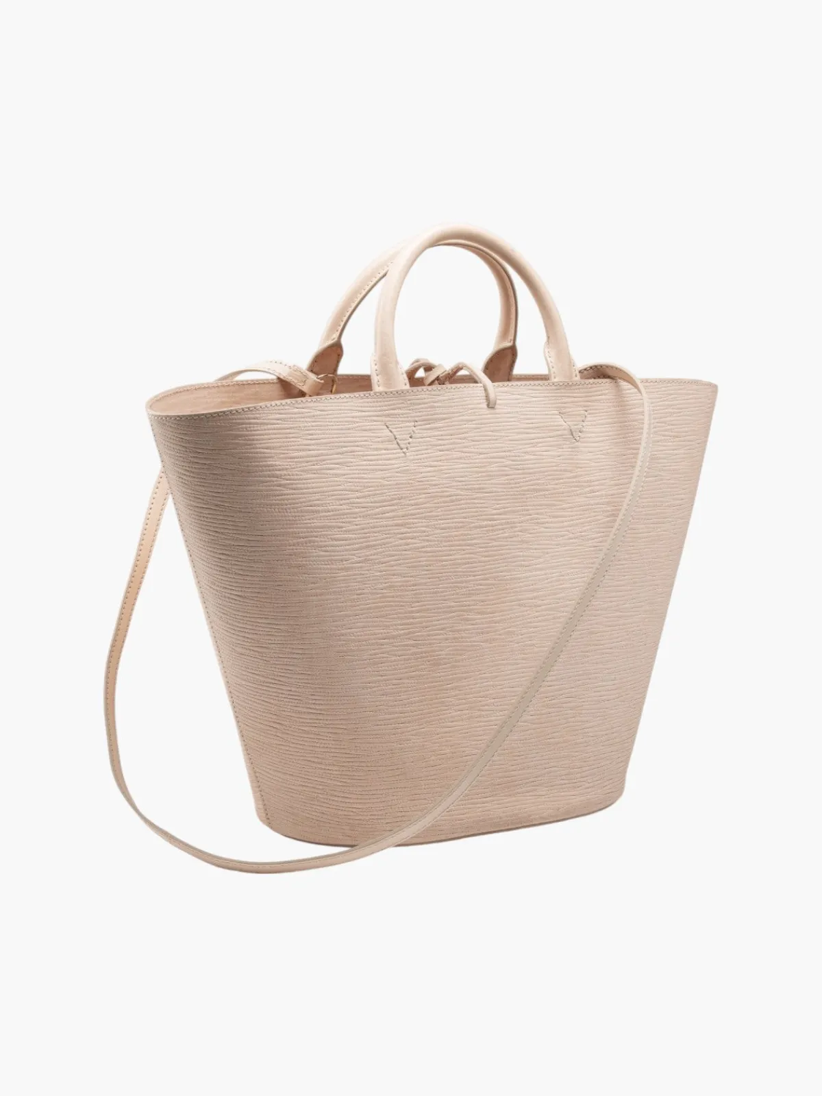 Our ODP Collection Large Cesta Basket Bag in Natural Embossed is inspired by traditional Sicilian basket bags. The bag features two short handles and a long leather strap to wear as a crossbody. Each handle features 24 hand sewn stitches. Handcrafted by artisans in Italy.