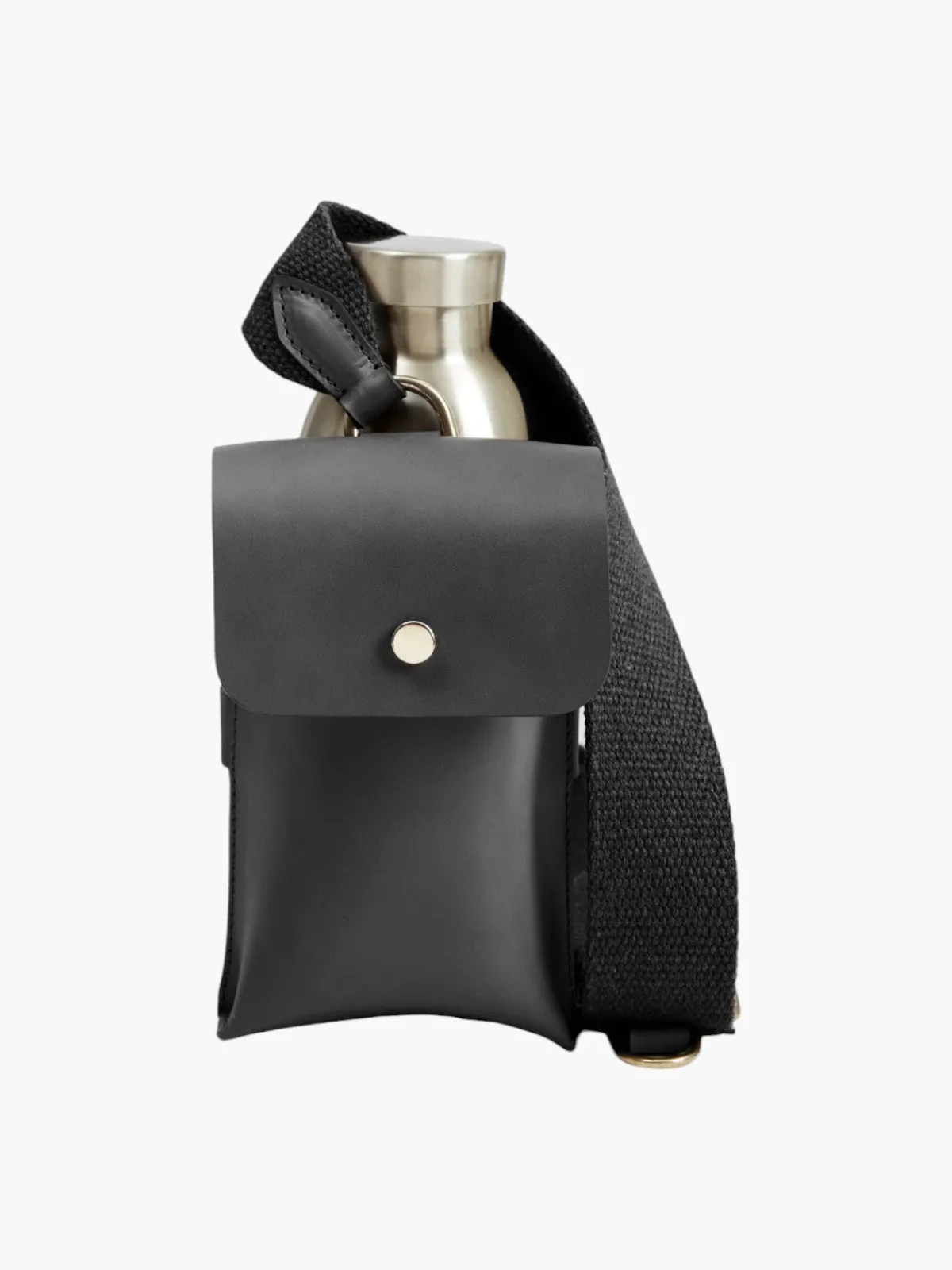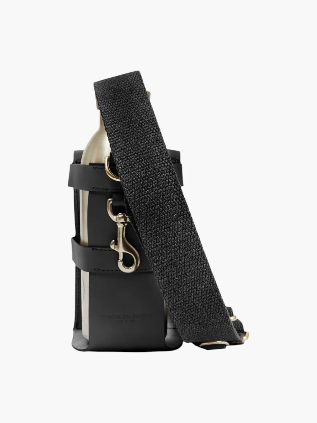 Our ODP Collection Leather Bottle Bag in Black features a magnetic closure pocket and phone pocket with brass hardware in a light gold plating. The bag has an adjustable shoulder strap so it can be worn as a crossbody. This bag comes with a GOTS-Certified organic cotton shopper dustbag. Handcrafted by artisans in Italy.