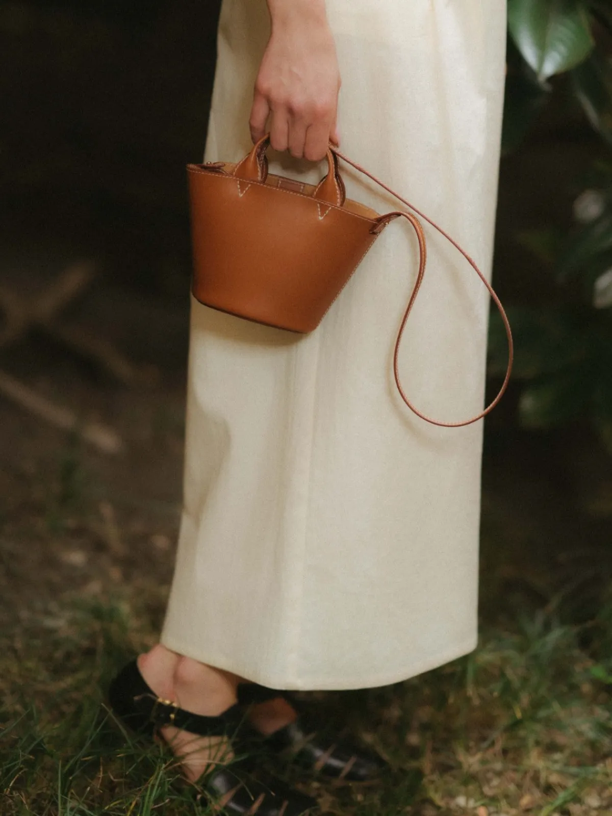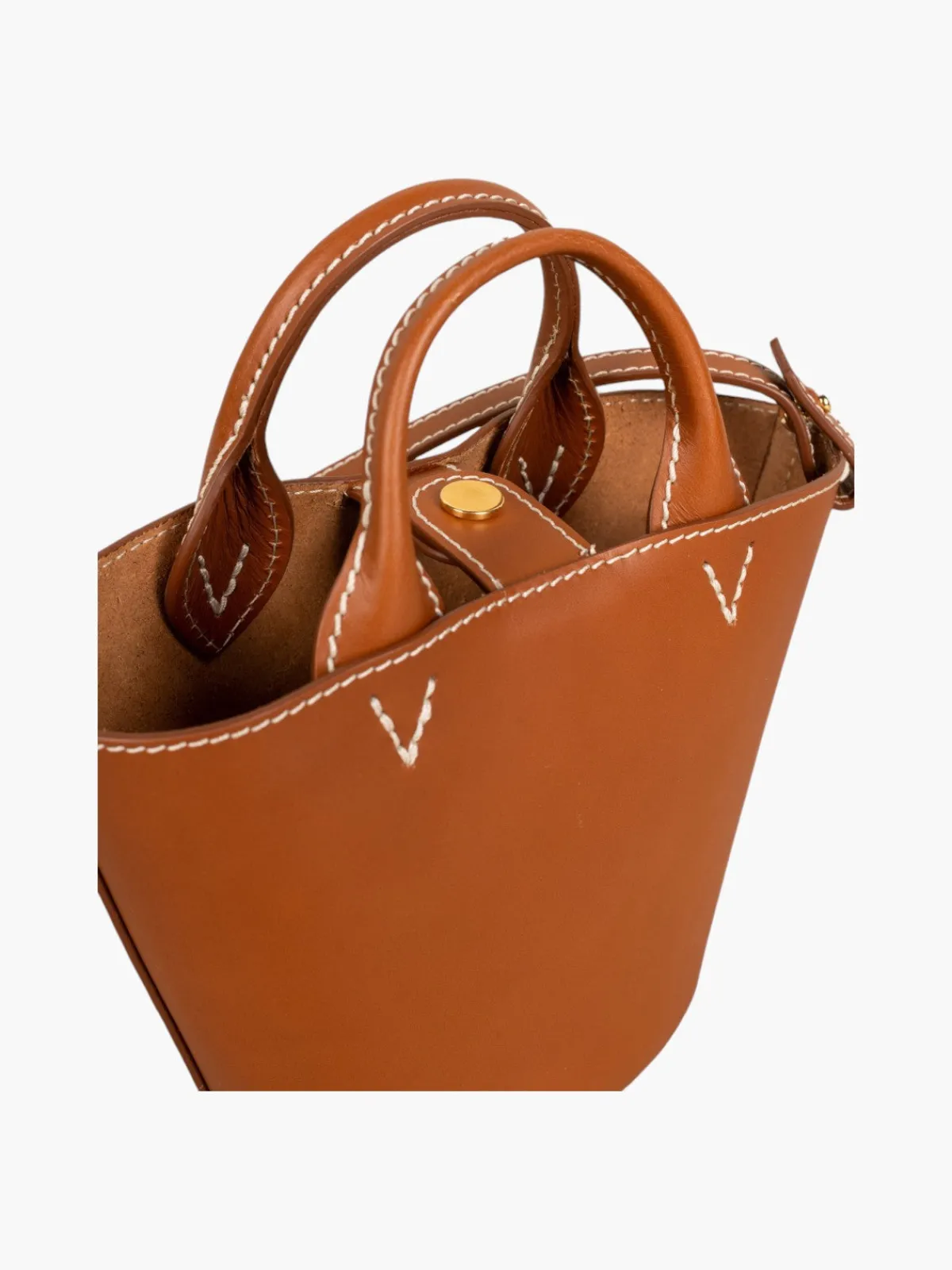 Our ODP Collection Mini Cesta Basket Bag in Tan is inspired by traditional Sicilian basket bags. The bag can be worn as a handheld or a crossbody. The bag has snap button closure and a removable strap. The handle is expertly executed with 16 hand stitches. Handcrafted by artisans in Italy.