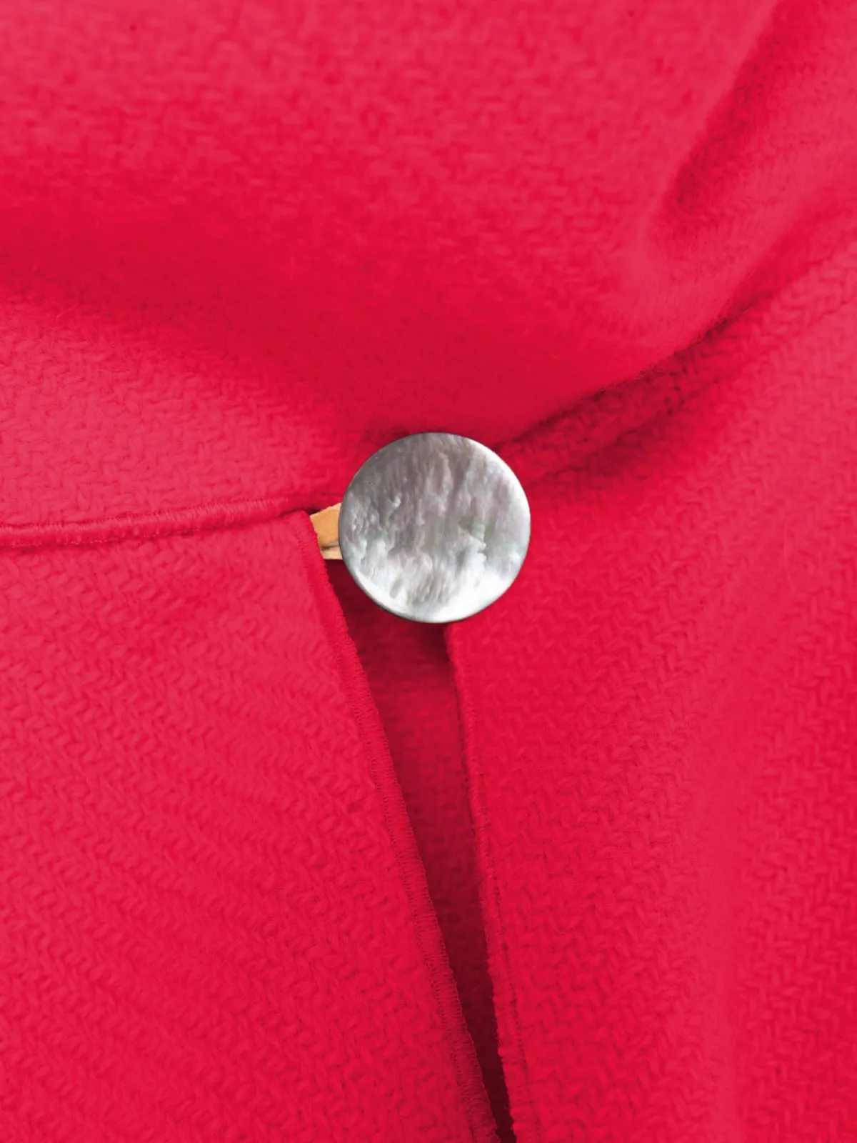 Our ODP Collection Wool Cape in La Rosa is the perfect classic cape in a classic light camel/tan hue. Features an open front with a shawl collar and scarf that can be wrapped around the neck. Finished with a wooden button closure at the neck and pockets at the front. Handcrafted by members of the Alice Cooperative: a group of women in prisons in the Lombardy region of Italy. The program enables them to achieve economic independence to prepare for successful rehabilitation.