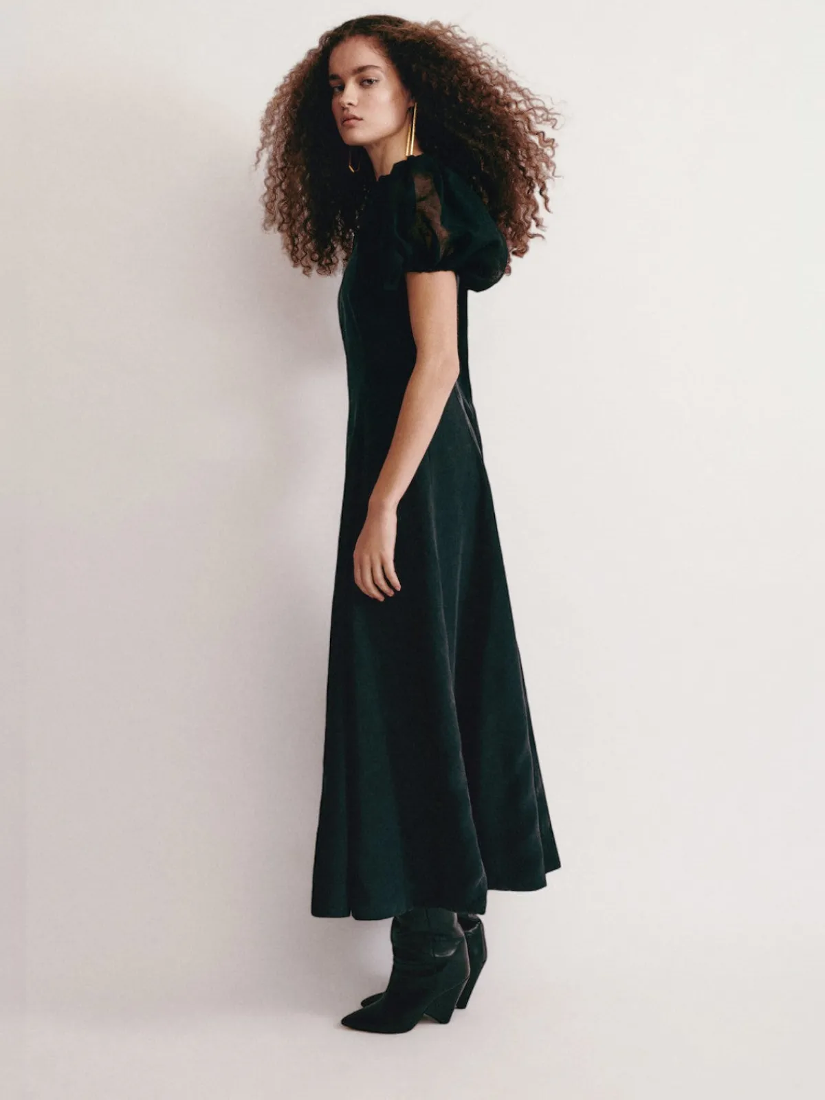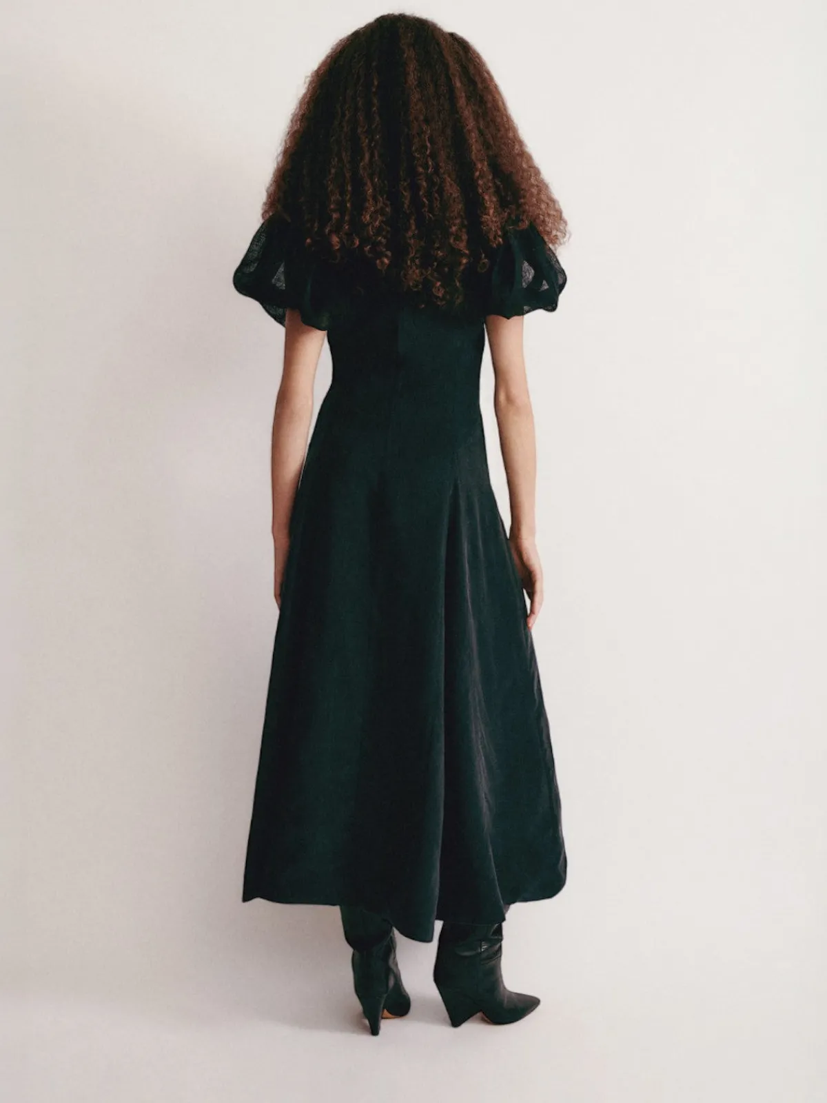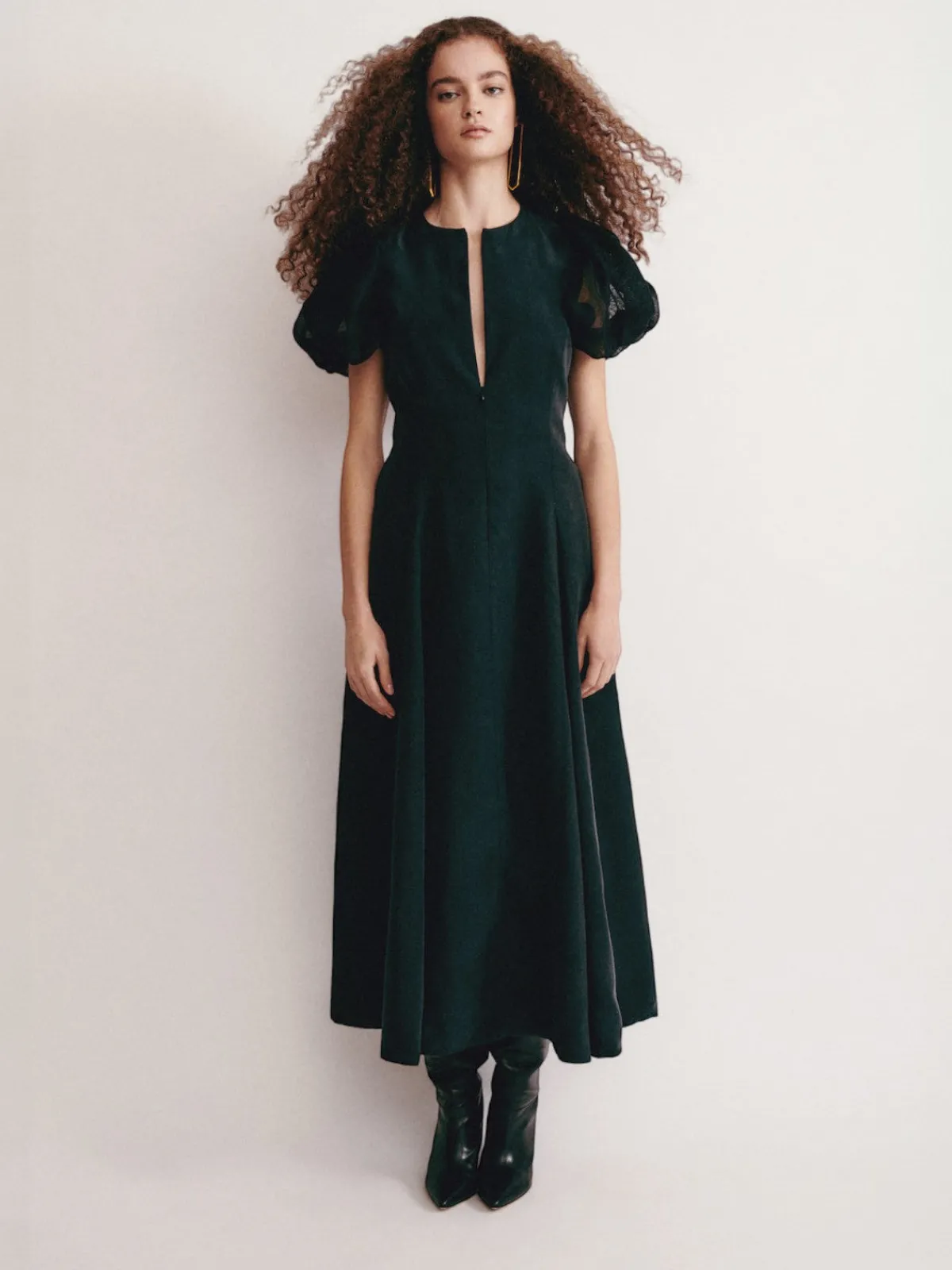 Our Olistic Eki Dress in Black is a long dress is the epitome of refined elegance, perfect for any occasion. Its ankle-grazing length creates a fluid, graceful silhouette, while the geometric panels introduce volume, enhancing the femininity of this maxi dress. Effortlessly comfortable, it features an invisible front zip and is crafted from lyocell, a luxuriously soft, silk-like fabric derived from sustainably sourced wood fibers. Handcrafted by artisans in Portugal.