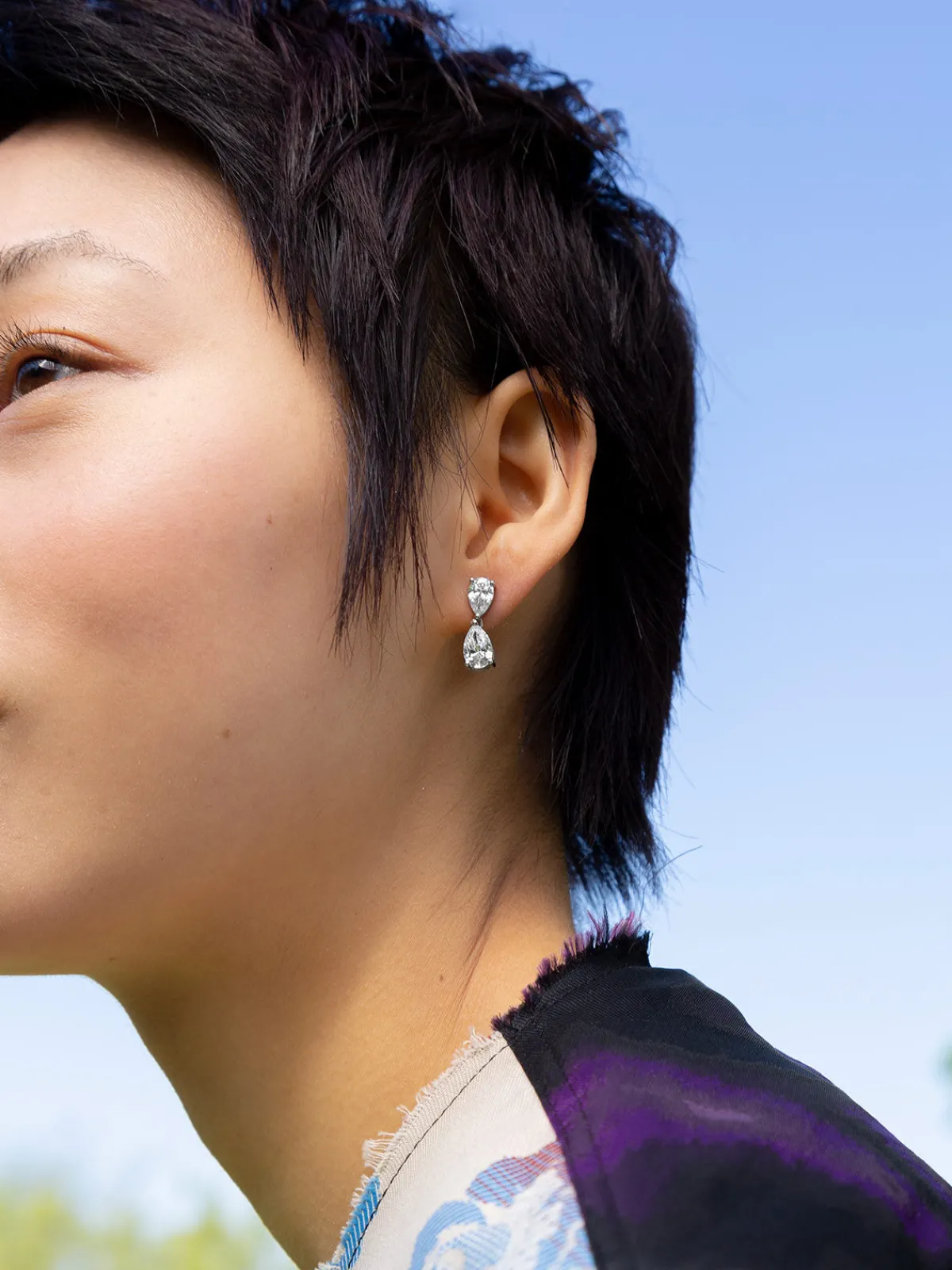 Our Or u0026amp; Elle Bisous De Poires are brilliant in a 4.3ct pear-shaped design. Each earring features two diamonds that turn toward each other to form the shape of a kiss. Secured with stud backings. Handcrafted by master artisans in an Antwerp, Belgium atelier.