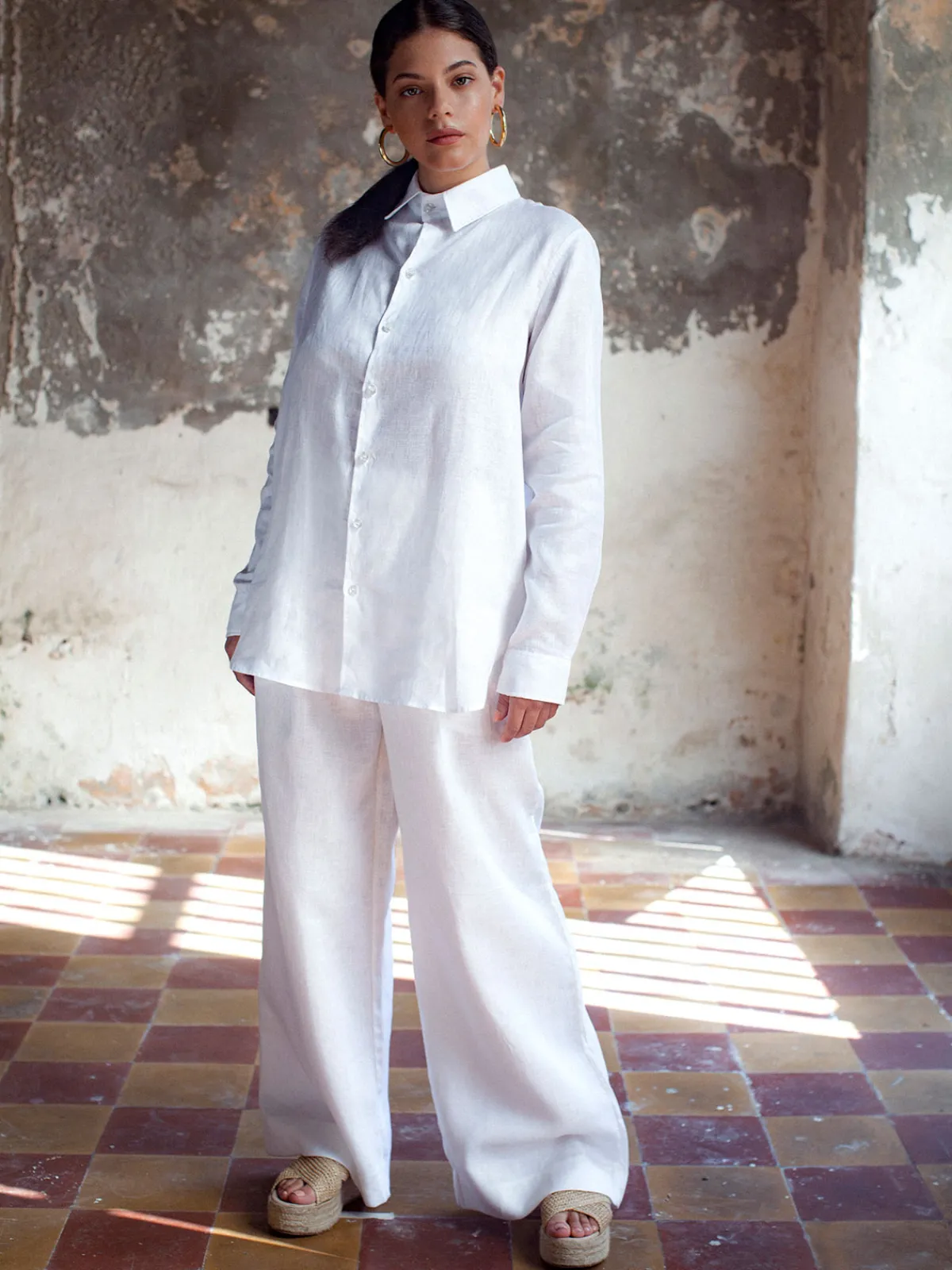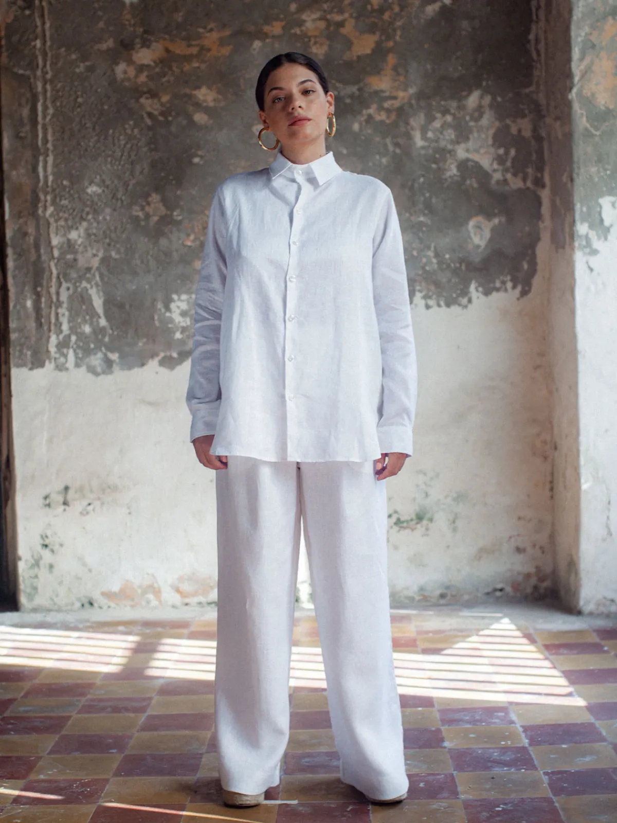 Our Sancte Claver Shirt in White boasts a relaxed fit in an oversized silhouette with long sleeves, a classic collar, and a button front placket. Handcrafted by female artisans in Colombia.